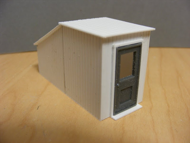 The roof needs access, so I built this stairway housing out of scribed styrene and a spare door. I did cut off the door's transom to lower it.
